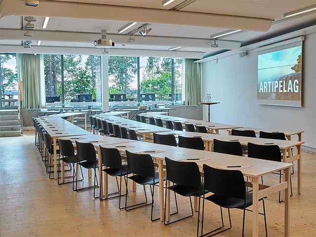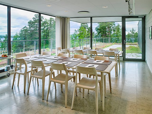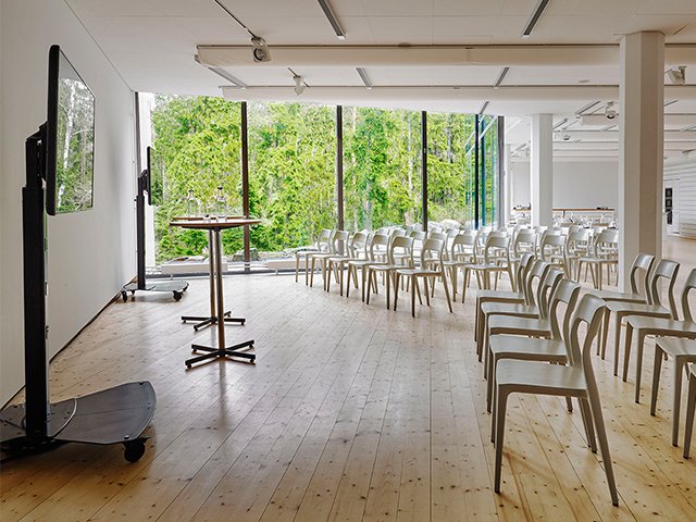 På plan 1 ligger populära Studion som är ett mycket flexibelt rum med möjligheter till möten, workshops och privata tillställningar. Även här finns känslan av att vara i direkt anslutning till naturen, med vackert ljus och utsikt över tallar och vatten.
