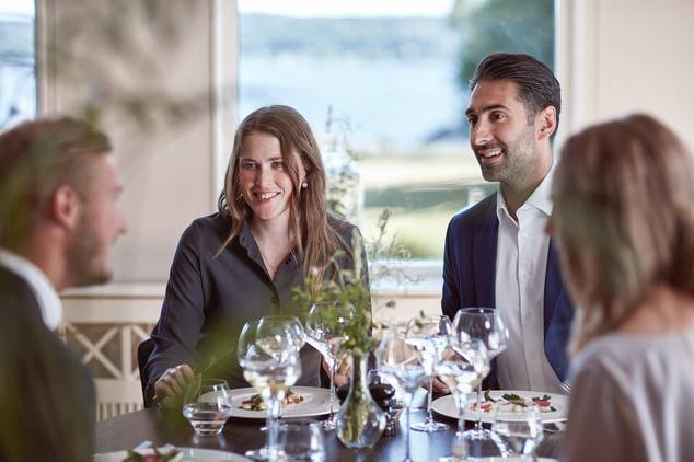 I restaurangen bjuds ni på hemlagad mat tillsammans med utvalda viner i en vacker och historisk miljö med sjön Aspen som vacker fond. Köket lagar med stor kärlek maträtter på noga utvalda råvaror efter säsong och väljer med fördel närproducerat. Här erbjuds måltider lagade på en hög andel ekologiska råvaror. När vädret tillåter finns även möjlighet att njuta av en dignande grillbuffé i ett stort festtält.