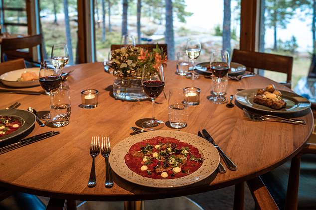 Middag serveras i Matsalen året om. Under sommarhalvåret är även Djurönäsets sommarrestaurang Sjöboden öppen. En klassisk skärgårdsrestaurang med en arms avstånd till vattnet.