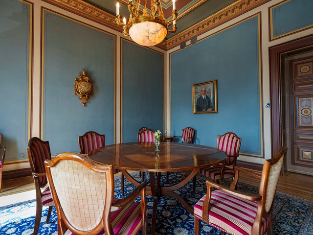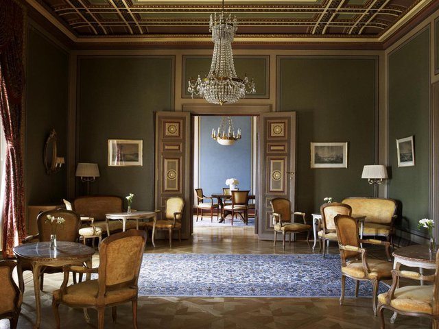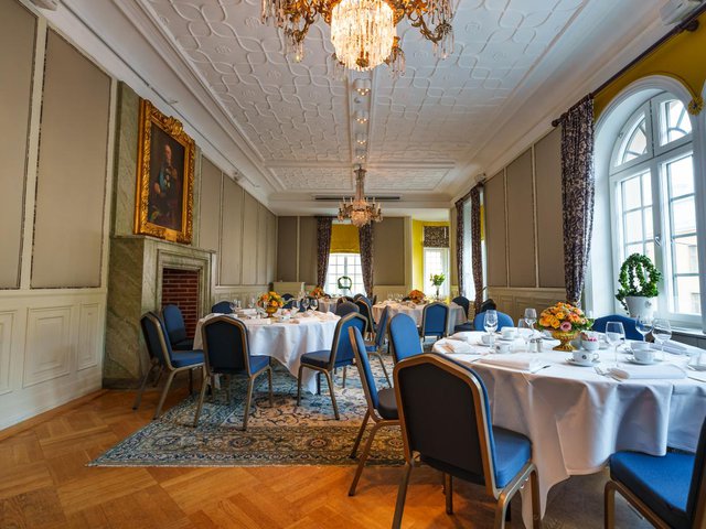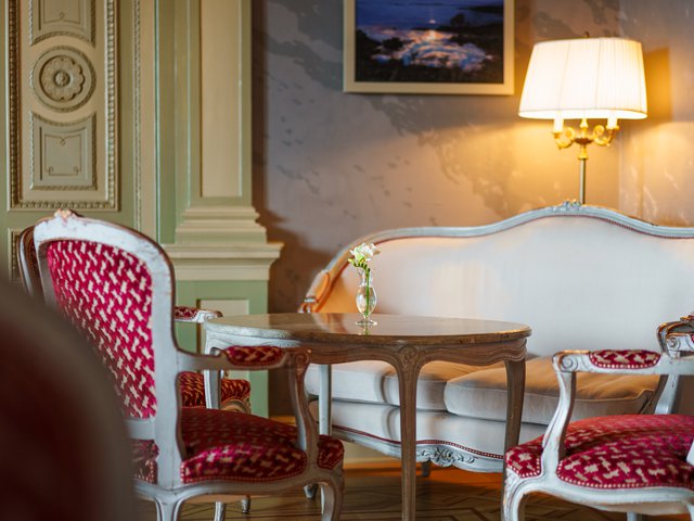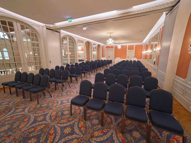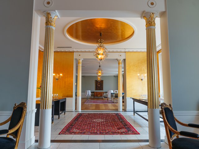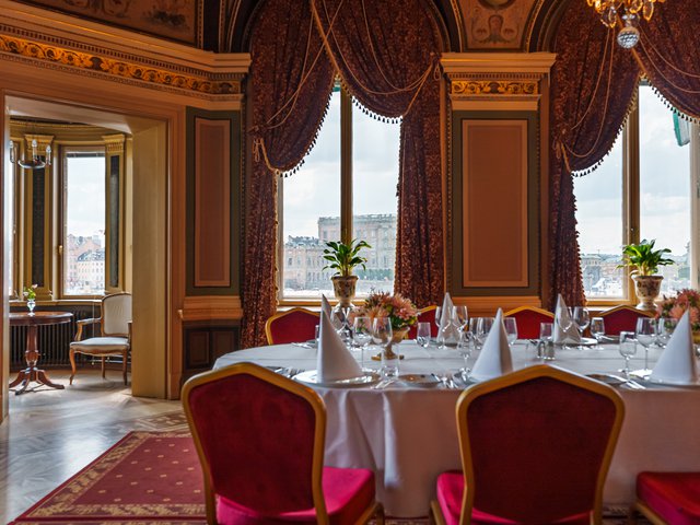 Salongen är som gjord för en mindre konferens eller företagets årliga bolagsstämma. Behöver ni mer yta går det utmärkt att kombinera den med någon av de andra salongerna i Grand Hôtel Royal, som den här delen av hotellet kallas.