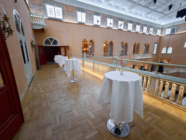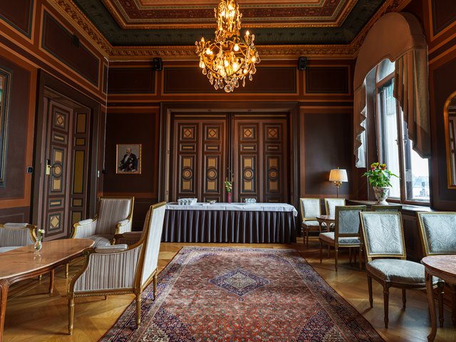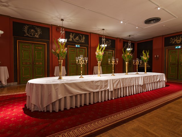 Blasierummet gör sig lika bra för en vigsel som för ett pressmöte. I hyran ingår även Mårten Winges rum och Hugo Alfvéns salong, där man kan skåla i champagne eller ta en kopp kaffe i anslutning till evenemanget. Behöver ni mer plats går det bra att hyra hela Bolinderska Palatsets första våning.