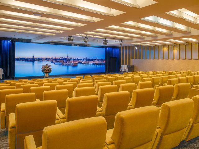 Stockholm lämpar sig utmärkt för större evenemang såsom produktlanseringar och bolagsstämmor. Auditoriumet tar 215 sittande deltagare och till lokalen hör en foajé med rymliga ytor, väl lämpade för utställningar, mässor och trevligt mingel. Studio Stockholm - hybridstudio Nu har vi etablerat en permanent hybridstudio i vår lokal Stockholm. Hybridstudion anpassas och skräddarsys utifrån varje specifikt behov och tillfälle. Den tekniska utrustningen gör det möjligt att skapa högteknologiska evenemang där deltagare kan vara på plats i lokalen, via webblänk eller båda delarna samtidigt. Utrustningen, som är den bästa i respektive kategori, består av flera integrerade LCD skärmar, trådlösa mikrofonsystem, projektion, fjärrstyrda kameror, streaming av ljud och bild, justerbart fond- och dekorljus.