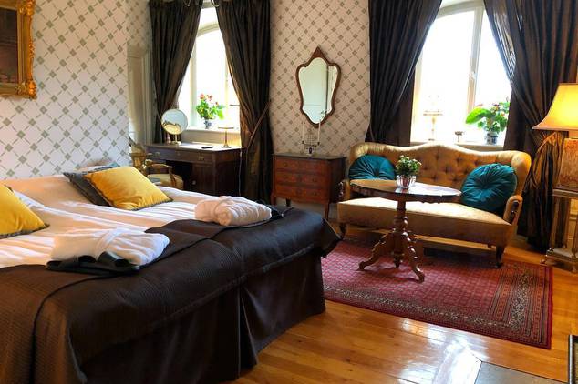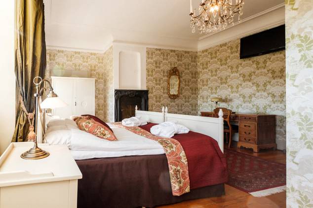 Slottet hyser 11 tidstypiska dubberum och 1 svit. Varsamt renoverade under 2010 och moderniserade till dagens standard, men med gårdagens charm bevarad.