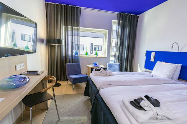 Det finns tre olika standarder för hotellrummen: Art Room som är vårt standardrum, Art Deluxe Room med bäddsoffa för extra sängplatser, samt Art Experience Room som är våra lyxigaste rum. Alla rum är unikt designade av Kosta Bodas formgivare och fullt utrustade med vad man kan tänkas behöva.