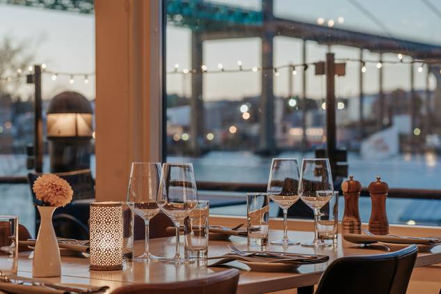 För grupper som vill sitta avskilt erbjuder vi allt från en glasveranda i restaurangen med magisk utsikt över hamninloppet till vår större festvåning med stora burspråk mot Göta Älv och Göteborg skyline.