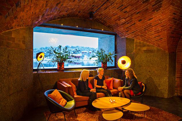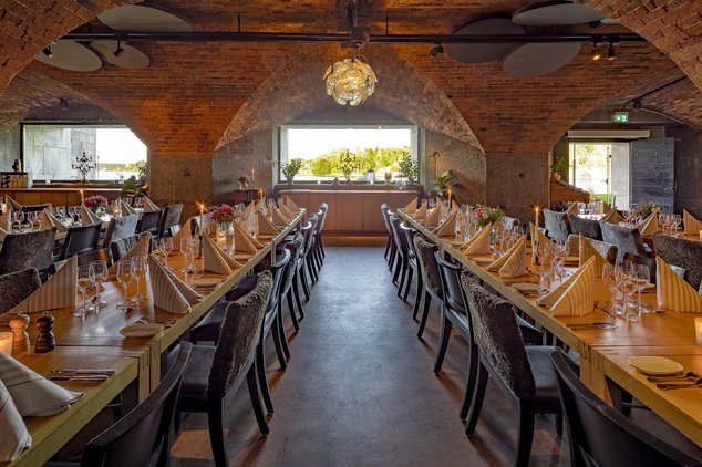 Modernt inredda Restaurang Pansarbatteriet andas historia med sina tegelklädda väggar och valv som tar dig till Kastellets inre. Härifrån har du panoramautsikt över Rindösundet medan du njuter av vällagad mat och utvalda drycker. Det här är en riktig liten pärla i skärgården!